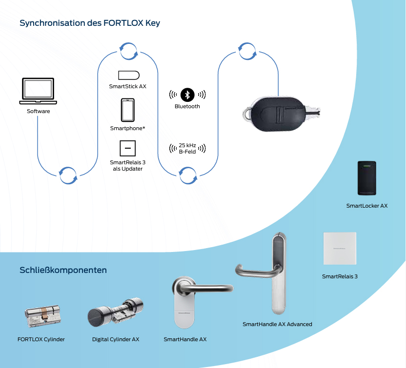 - Der FORTLOX Key schließt und öffnet FORTLOX Cylinder und zahlreiche SimonsVoss Schließkomponenten